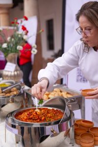 La ministra de Turismo Sostenible, Culturas, Folklore y Gastronomía, Cinthya Yañez, junto a la viceministra de Gastronomía, Sumaya Prado y representantes de instituciones aliadas — Claudia Fernández, de The Coca-Cola Foundation; Noelia Mollinedo, de la Fundación Creamos Juntos; y Gabriela Sahonero, del Gobierno Autónomo Municipal de Sucre —recorrieron la oferta gastronómica y degustaron propuestas que reflejan la identidad y calidad de la cocina local, en instalaciones de la Universidad San Francisco Xavier.